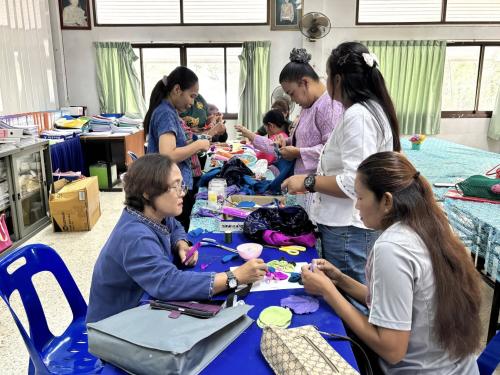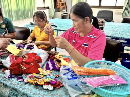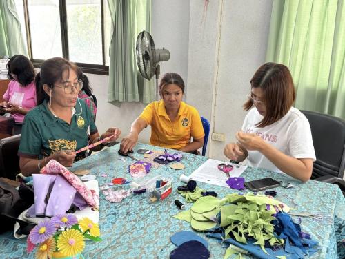 พช.โพทะเล จ.พิจิตร ร่วมกันประดิษฐ์ผีเสื้อจากเศษผ้าไทย เพื่อสนับสนุนการออกร้านงานกาชาดของสมาคมแม่บ้านมหาดไทย ประจำปี 2568